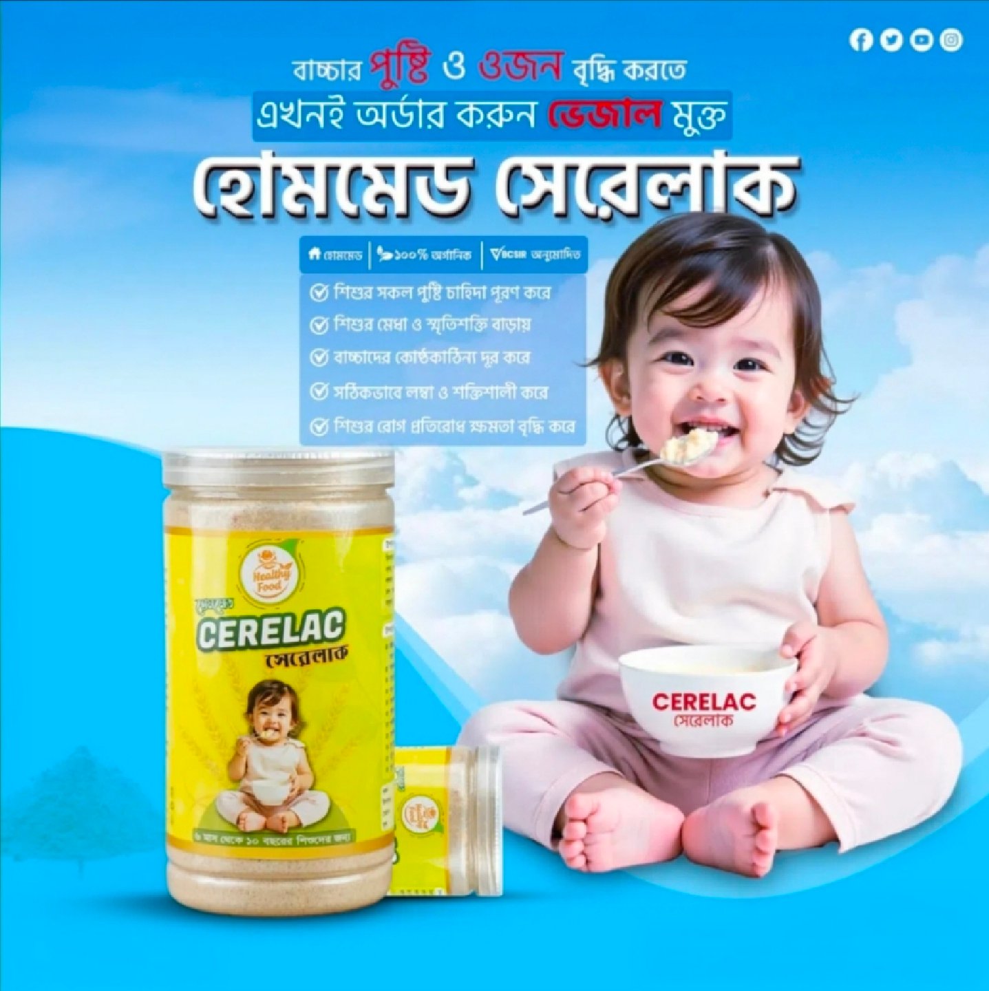 আমরা ঘরোয়া পদ্ধতিতে অত্যন্ত যত্ন সহকারে এটি তৈরি করে থাকি, যা আপনার বেবিকে নিশ্চিন্তে দিতে পারনে।