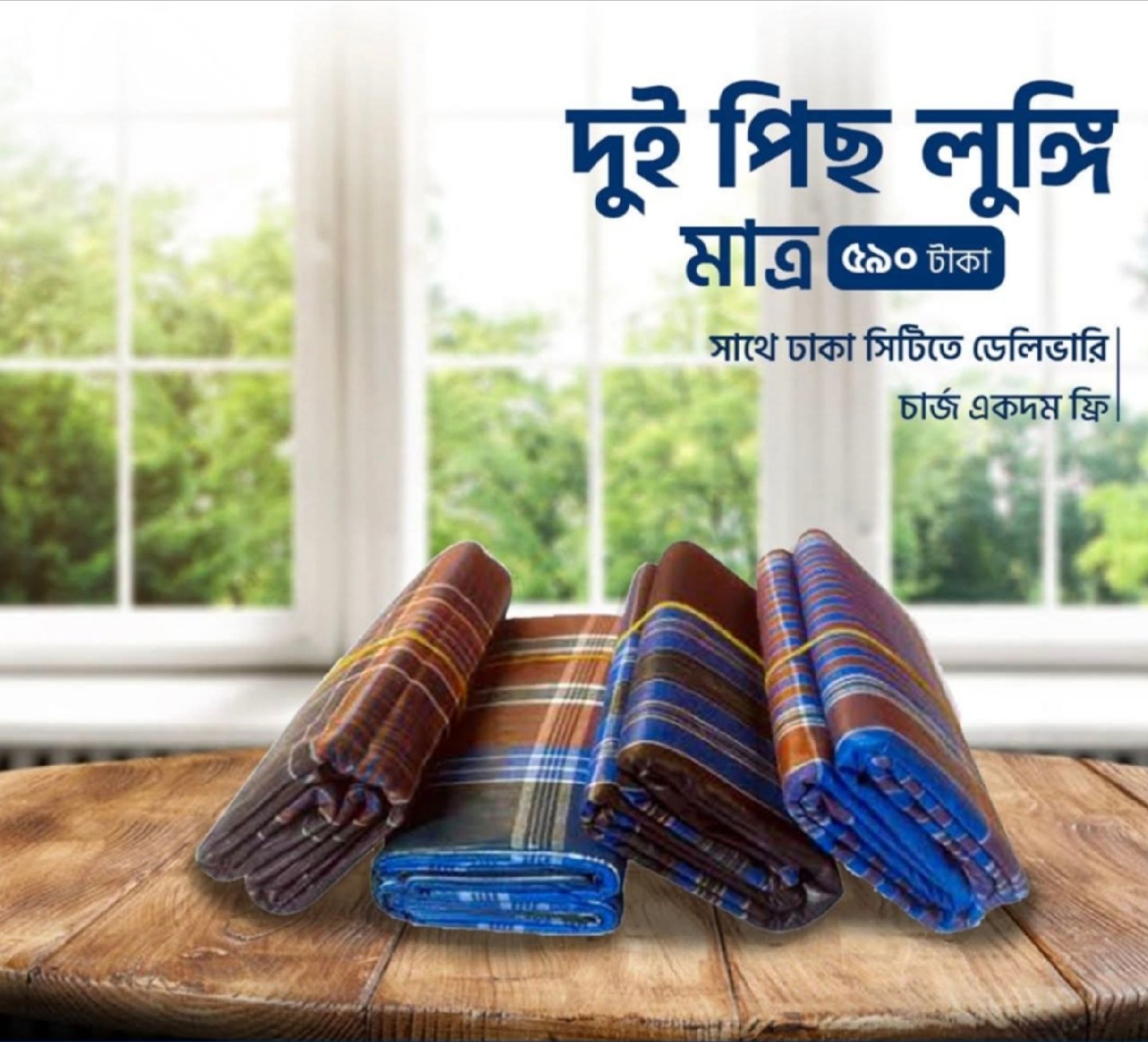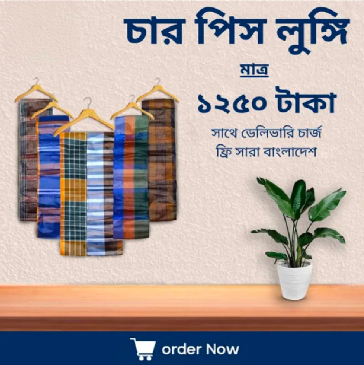 ? ৪ পিস কুমারখালী লুঙ্গী + ১ পিস গামছা ১২৫০ টাকা।